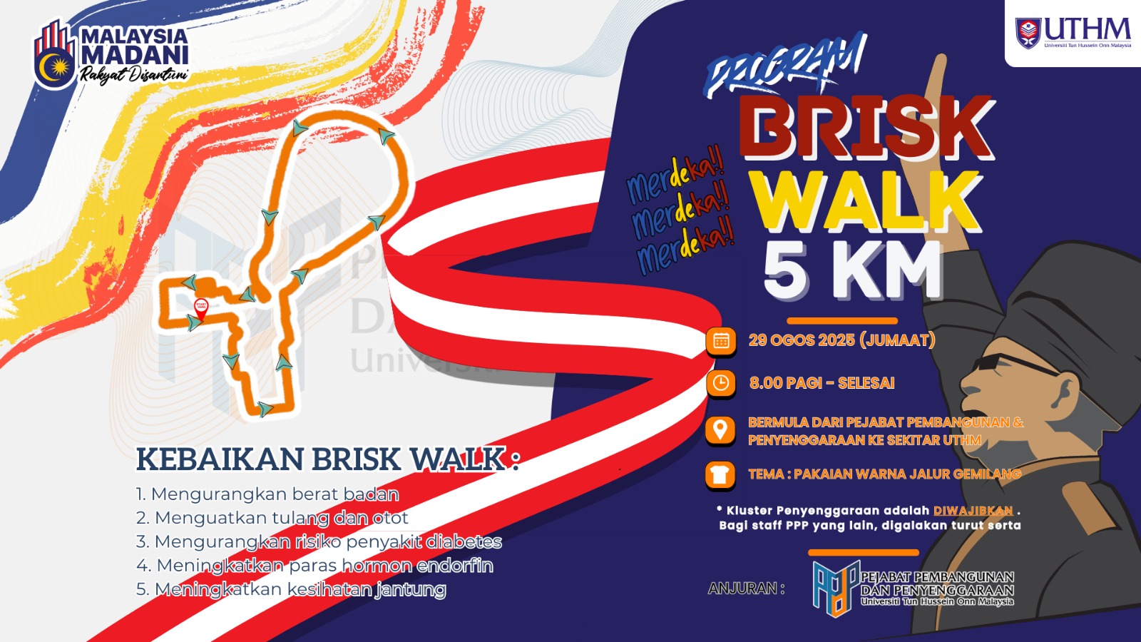 Pada 29 Mei 2025, Pejabat Pembangunan dan Penyenggaraan (PPP) dengan kerjasama Kelab Harta Bina (KHB) telah menganjurkan program Brisk Walk Merdeka PPP. Program sejauh 4.62 kilometer ini telah dimulakan pada jam 8:00 pagi dengan proses regangan otot yang diketuai oleh Biro Sukan dan Rekreasi, KHB.
