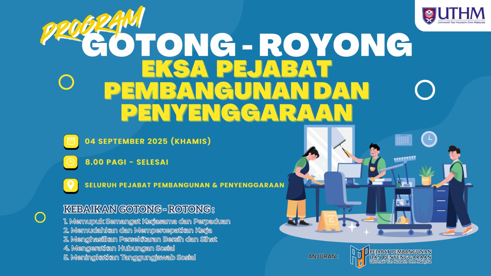 Pada 4 September 2025, Pejabat Pembangunan dan Penyenggaraan (PPP) telah melaksanakan aktiviti gotong royong EKSA pejabat. Aktiviti ini dijalankan sebagai persediaan PPP menghadapi audit EKSA pada akhir September nanti.