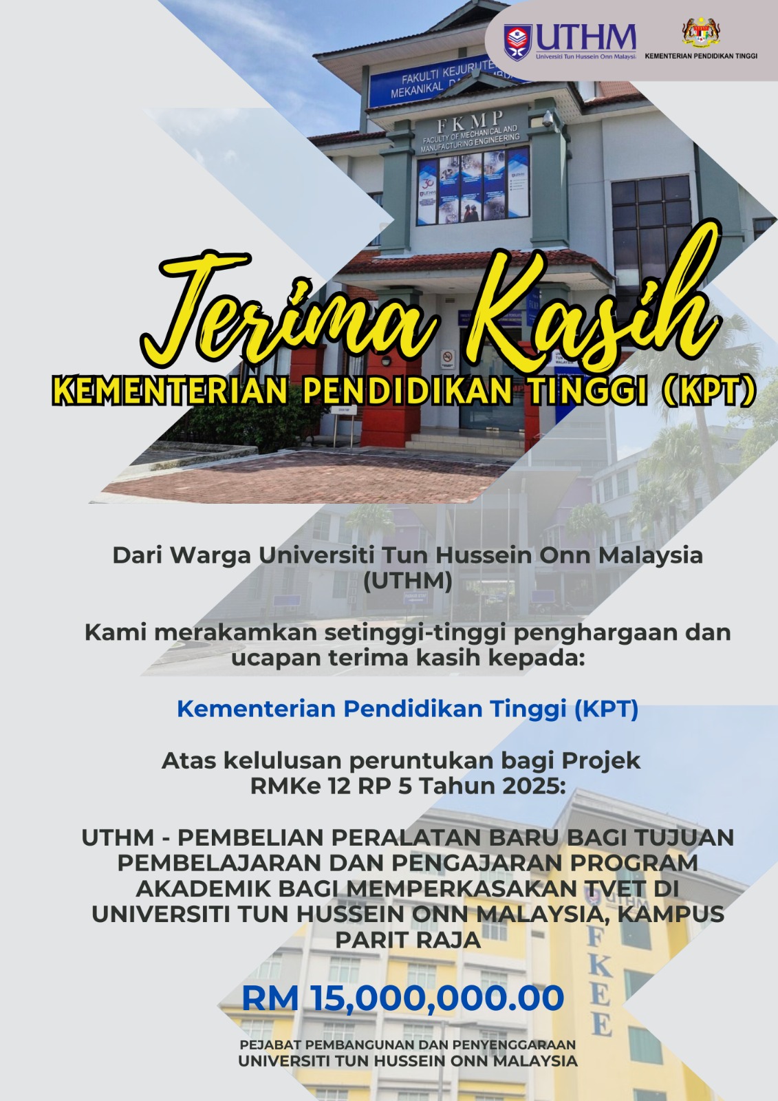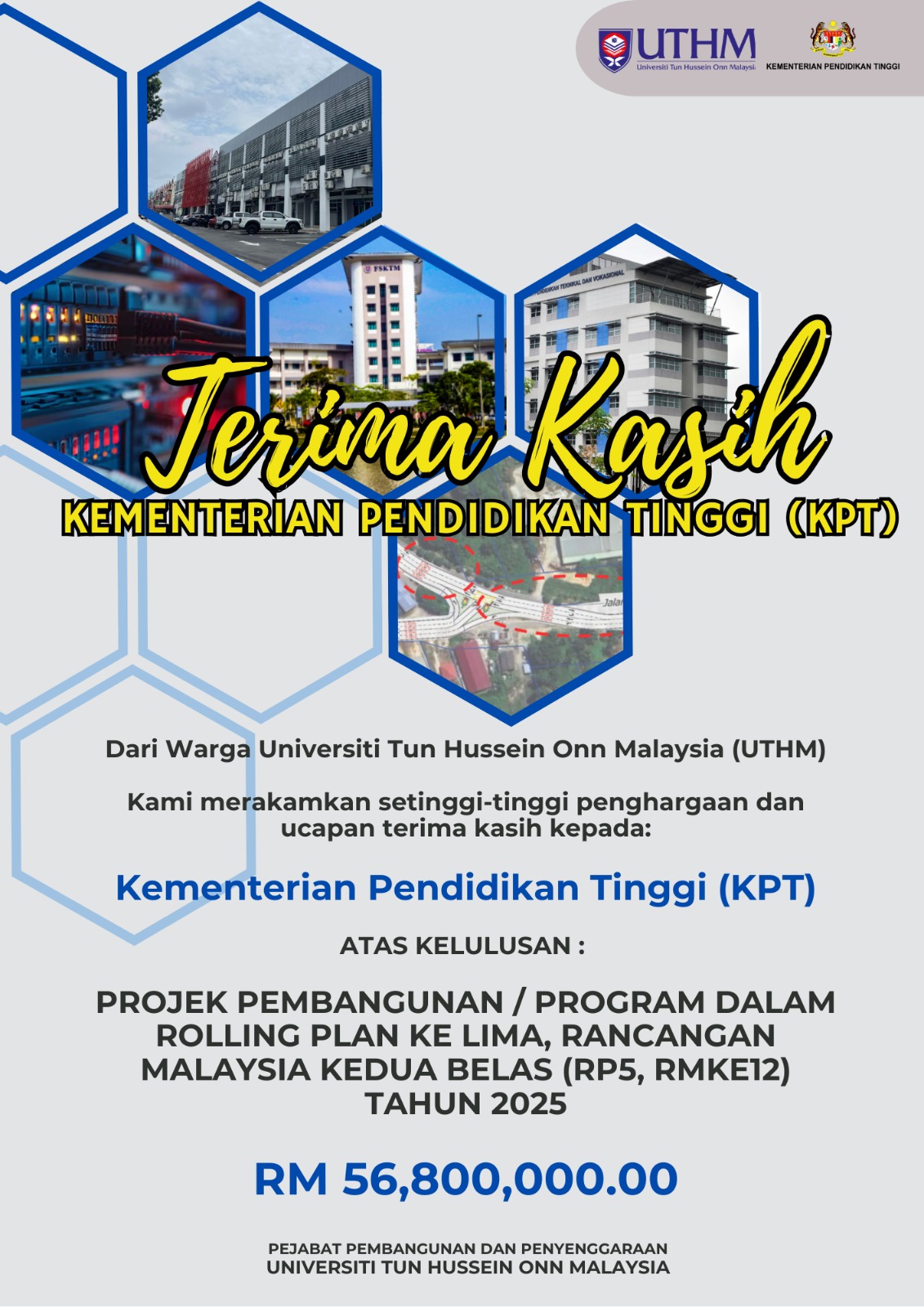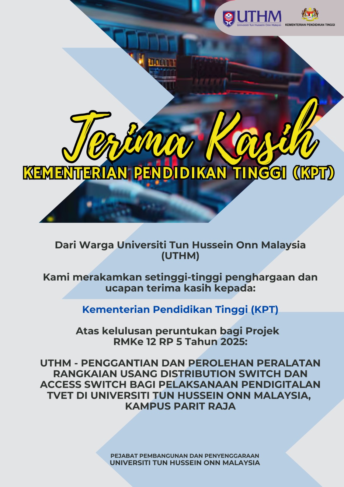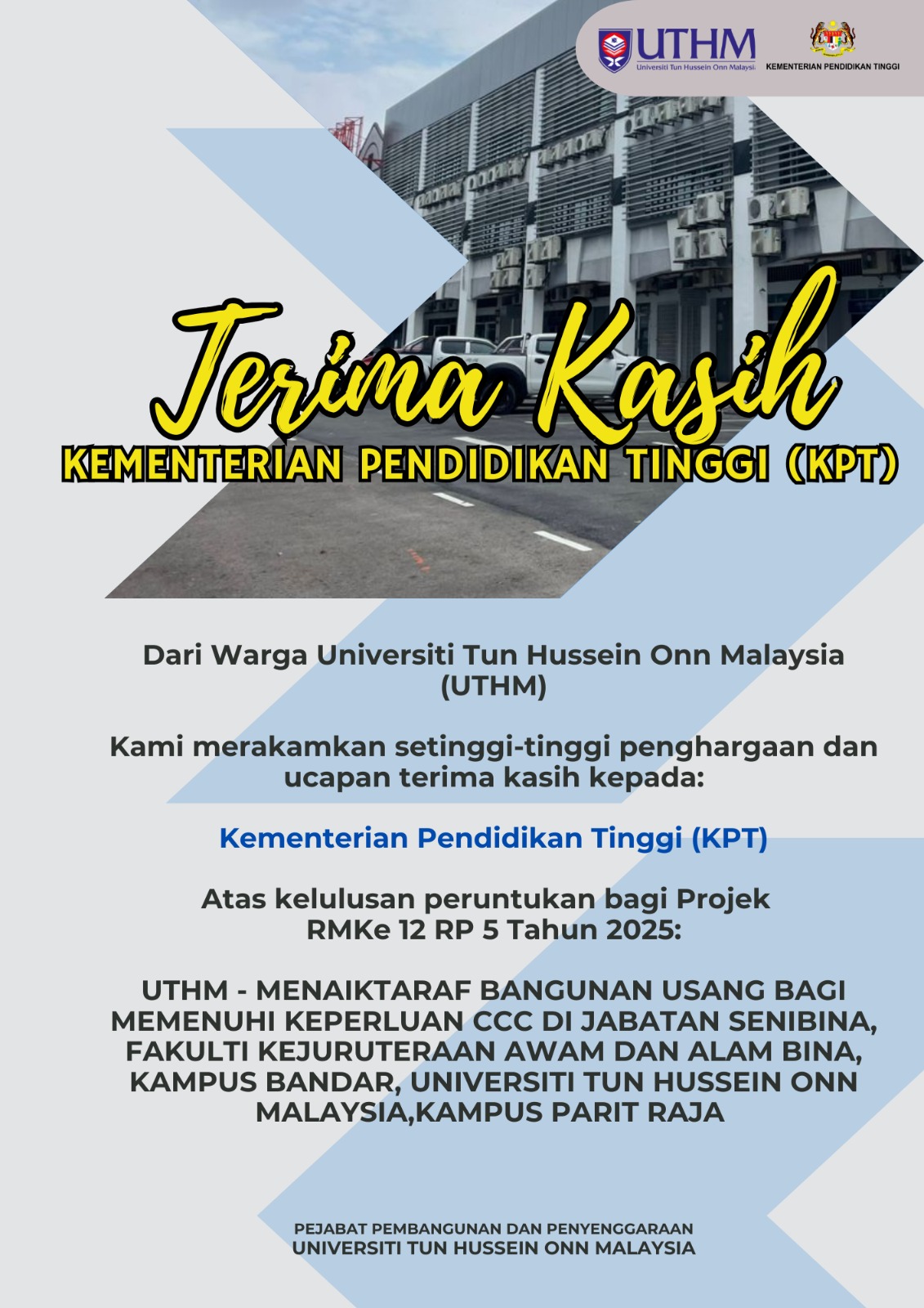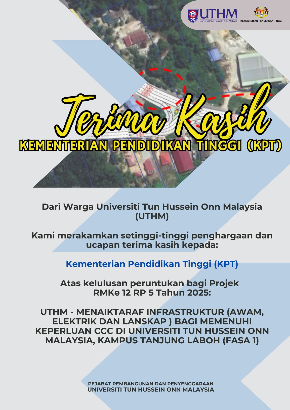 Pejabat Pembangunan dan Penyenggaraan ingin merakamkan jutaan terima kasih kepada Pusat Sukan dan Kebudayaan atas anugerah yang diberi.
